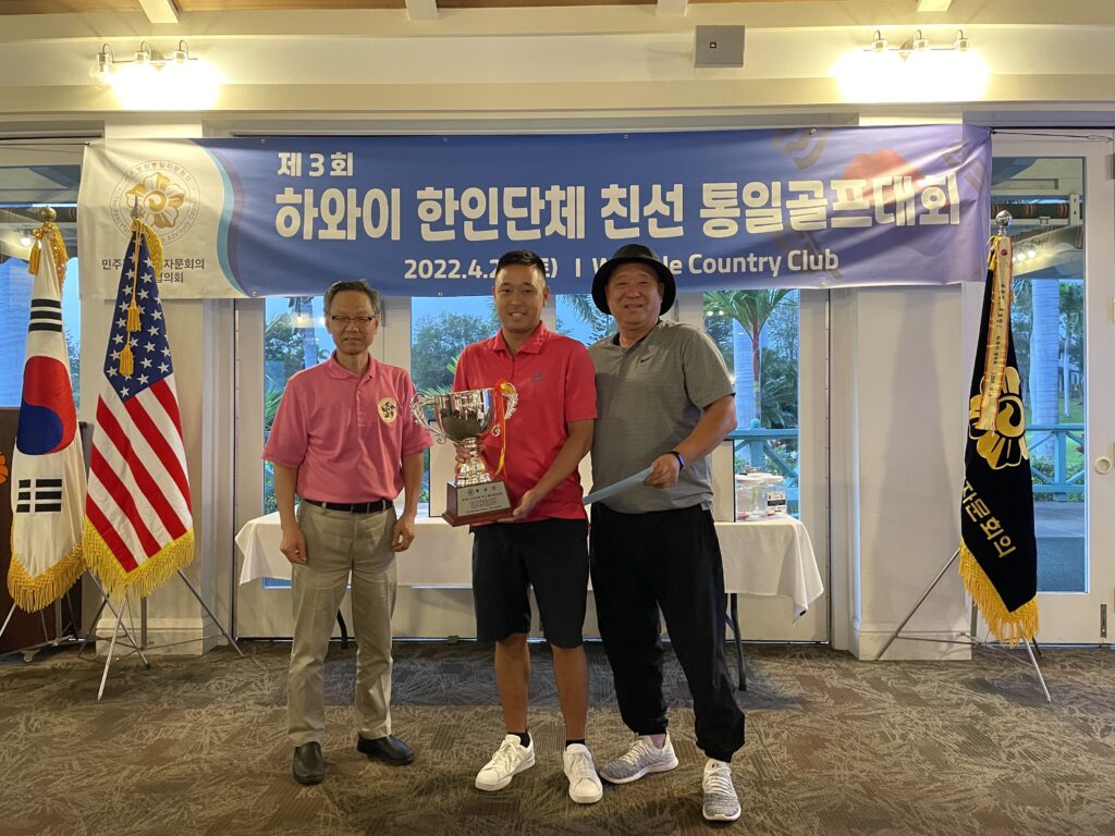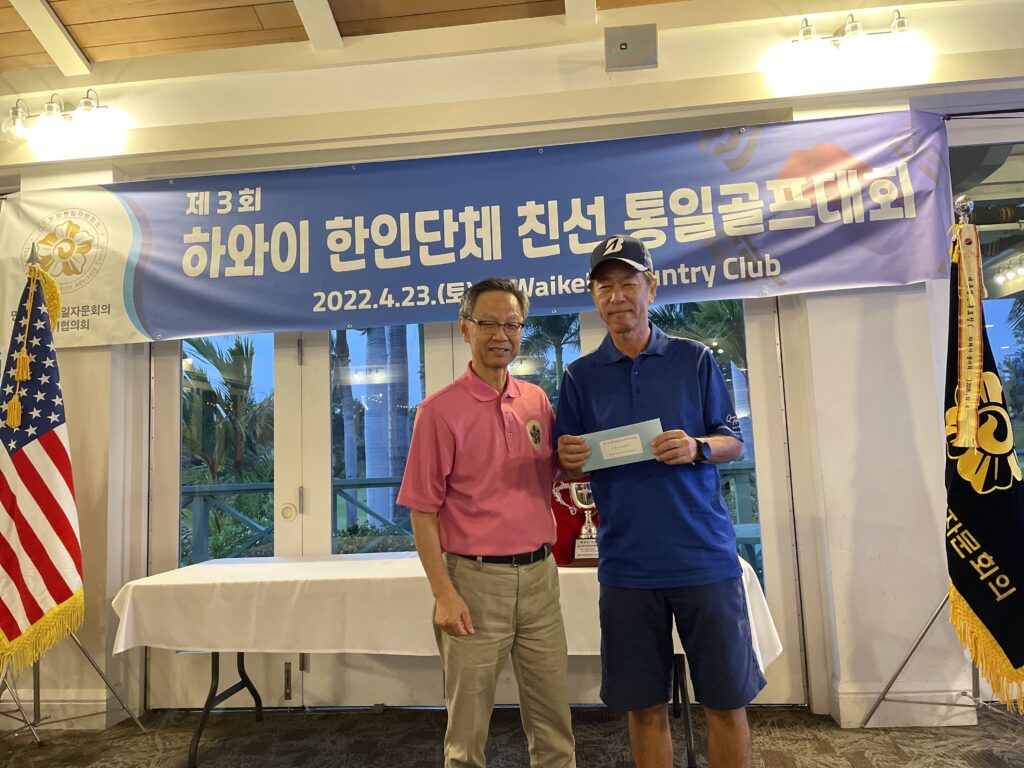 긴 펜데믹을 지내고 한마음으로 동포들이 함께한 이날 대회에는 총영사관, 하와이 한인회, 문추위, 한미시민권자 연맹, 하와이 한인 관광협회를 비롯하여 한인체육회, 라이온스 골프클럽, 글로벌 어린이재단, 무봉리, 오하나 퍼시픽 은행, 그리스도연합감리교회, 한국자유총연맹, 한미시민권자연맹, 아이에아 연합감리교회, 한미연합회, 한국일보 라디오서울 하와이, KBFD, 민주평통등 21개 단체에서 80여명이 넘게 참가하였으며 즐거운 골프대회가 끝나고 골프 트로피를 1등을 한 KCL Aloha Pacific팀에게 그리고 2등, 3등에게 상금을 수여하며 영광을 나눴다. 이 밖에도 랜덤 추첨으로 푸짐한 상금과 상품을 나누고 시종 화기애애한 분위기에서 통일 골프대회가 성공적으로 개최되었다.