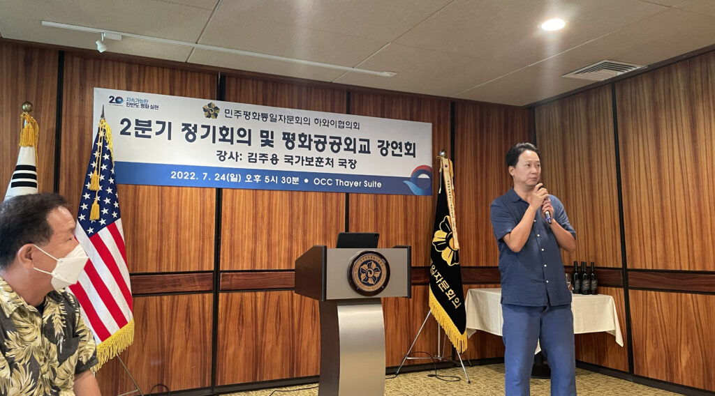 민주평통 하와이협의회(회장 박재원)가 지난 24일 오후 오아후 컨츄리클럽에서 2022년도 2분기 정기회의 및 평화공공외교 강연회를 개최했다.